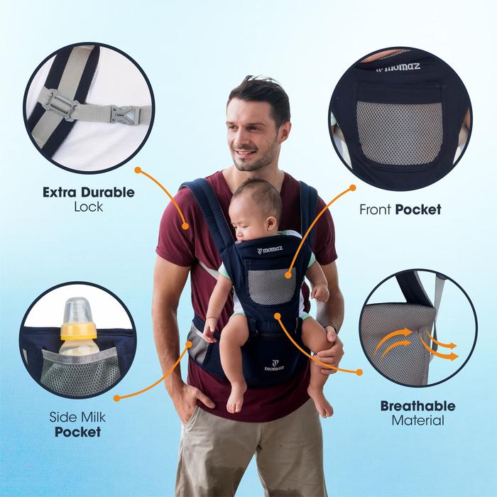 Gendongan Bayi Depan Hipseat Momaz 5in1 Empuk Dudukan