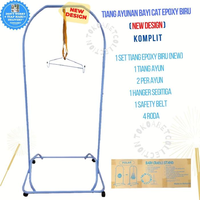 Ayunan Bayi Tiang Ayun POLAR EPOXY BIRU Lengkap Per Hanger Safety Belt dan Roda sebagai Perlengkapan