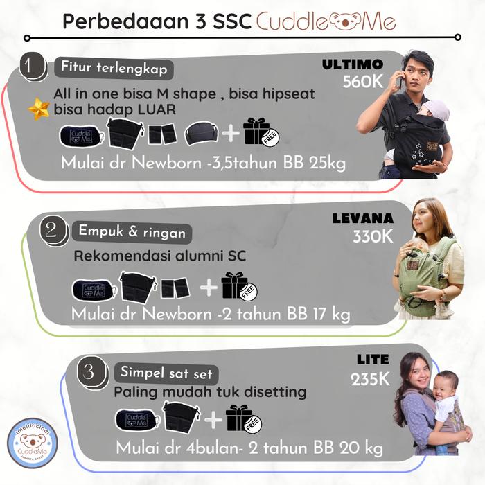 Cuddle me Lite carrier Polos Motif solid gendongan bayi depan SSC support M shape gendong hipseat