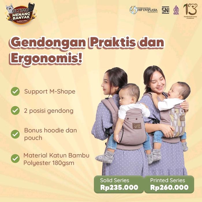 Cuddle Me Lite Carrier Gendongan Bayi Ergonomis SSC M Shape Praktis Instan CuddleMe Motif Solid Aman