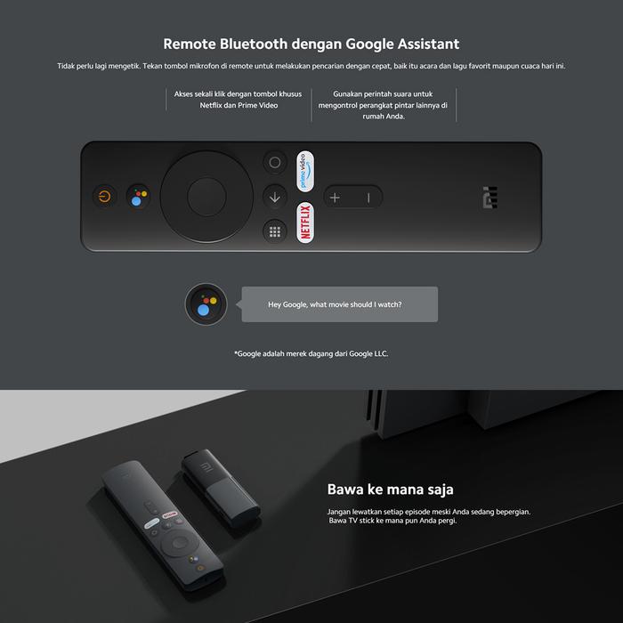 Xiaomi TV Stick 1080P Ram 1Gb Rom 8Gb Android TV 9.0 Support Google Assistant & Smart Cast Garansi
