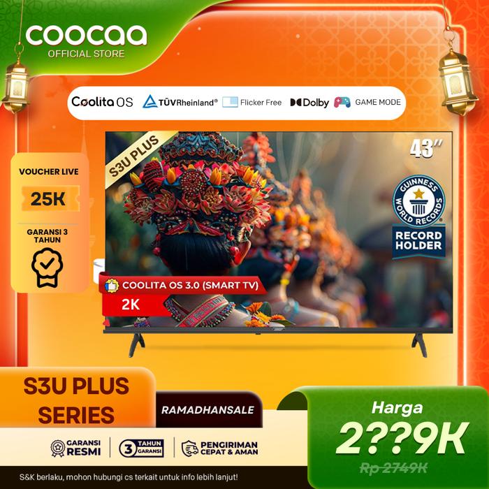 COOCAA S3U Plus TV 43 Inch Smart TV dengan Dolby Audio WIFI Trochilus Extreme 2.0 Flicker Free OS