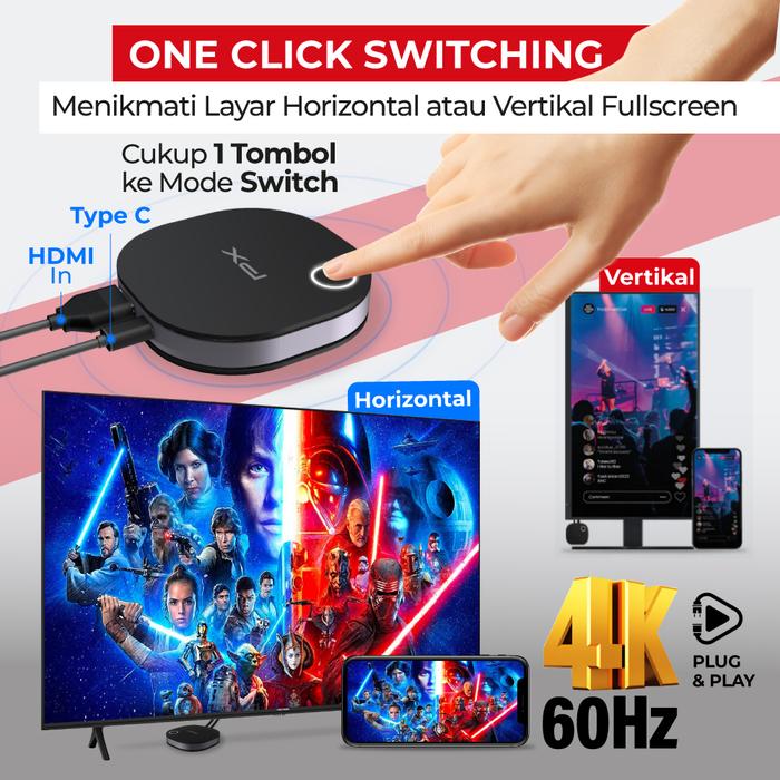 HDMI Wireless Adapter 4K 60Hz Ultra HD HP Laptop Macbook Ipad Tablet Iphone TV Monitor Proyektor