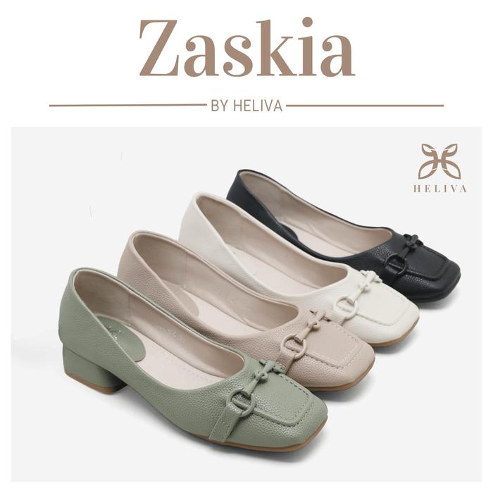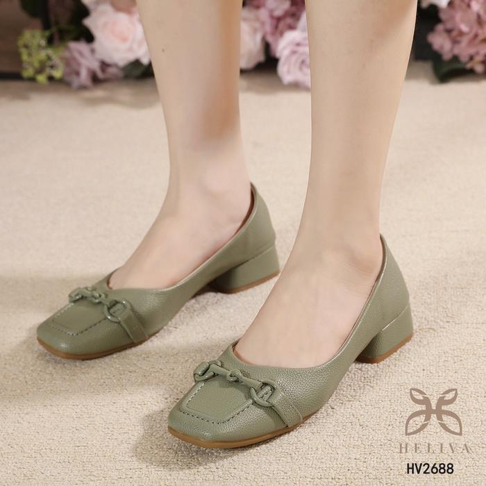 HELIVA ZASKIA Sepatu Wanita Kerja Polos Bahan Kulit Togo HV2688-1 Model Horsebit Hak Tahu 3cm Rendah