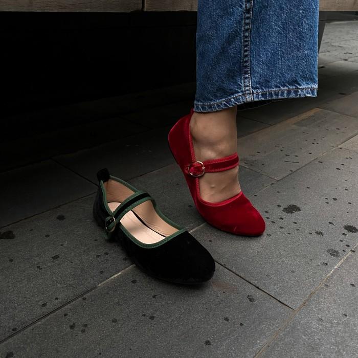 Blow Lensi Velvet Mary Jane Flats Shoes BLWF 0014