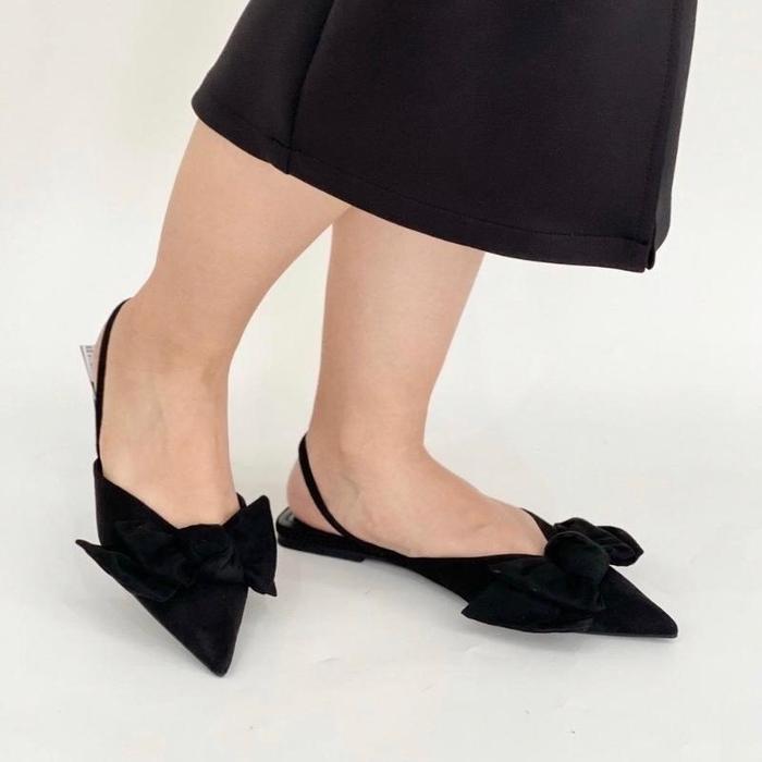 Sepatu Flat Wanita ZS 181 Sepatu Flat Pita Cewe Black
