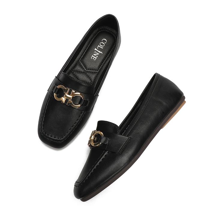 COLINE 893-560 Sepatu Flatshoes Kerja Wanita #C1051 Karet Shoes Flat Cewek Hitam Perempuan