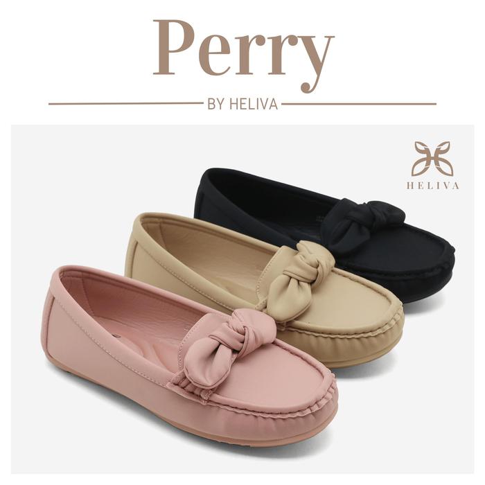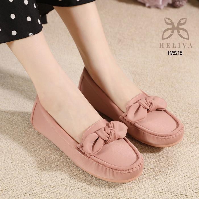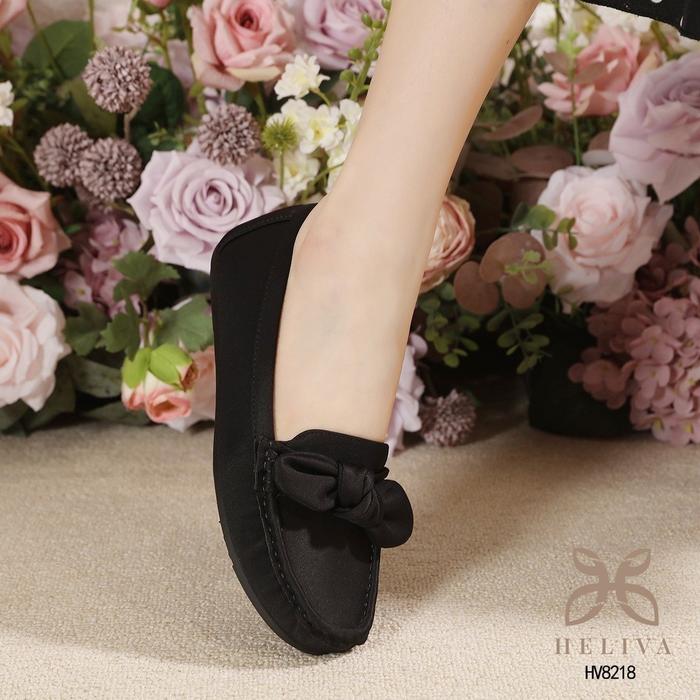 HELIVA PERRY Flat Loafers Shoes Model Bow HV8218 Motif Polos Moccasin Sepatu Wanita Slip On Kerja