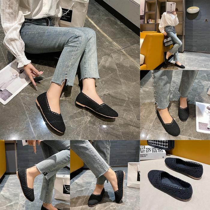 COLINE CLN-3368 Sepatu Slip On /Flat Shoes Brokat #C1153 Karet Flat Wanita Kerja Perempuan Hitam