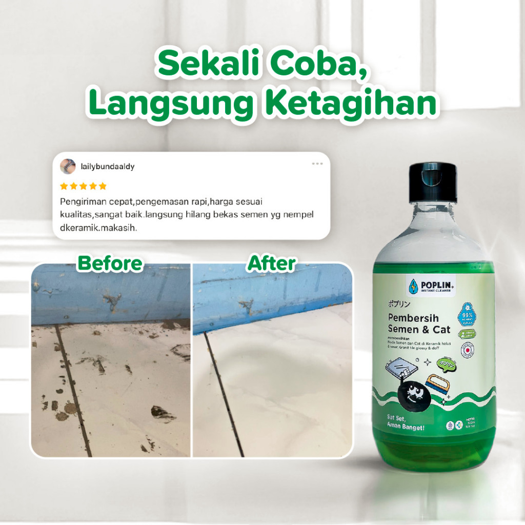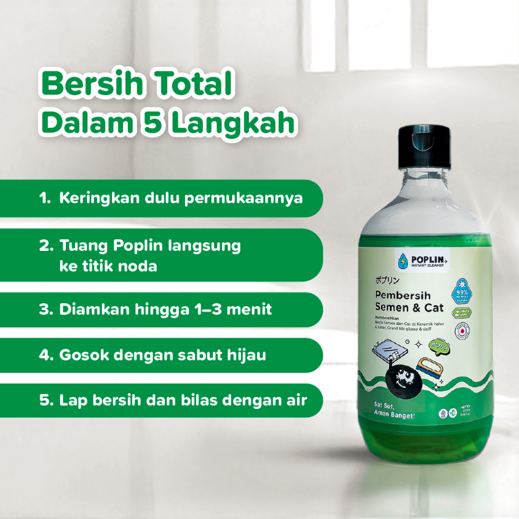 POPLIN Pembersih Semen dan Cat - Keramik Granit Tile | Praktis | Cepat | Aman tanpa kimia keras | Halal | FREE sabut
