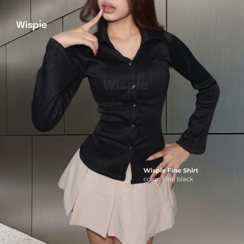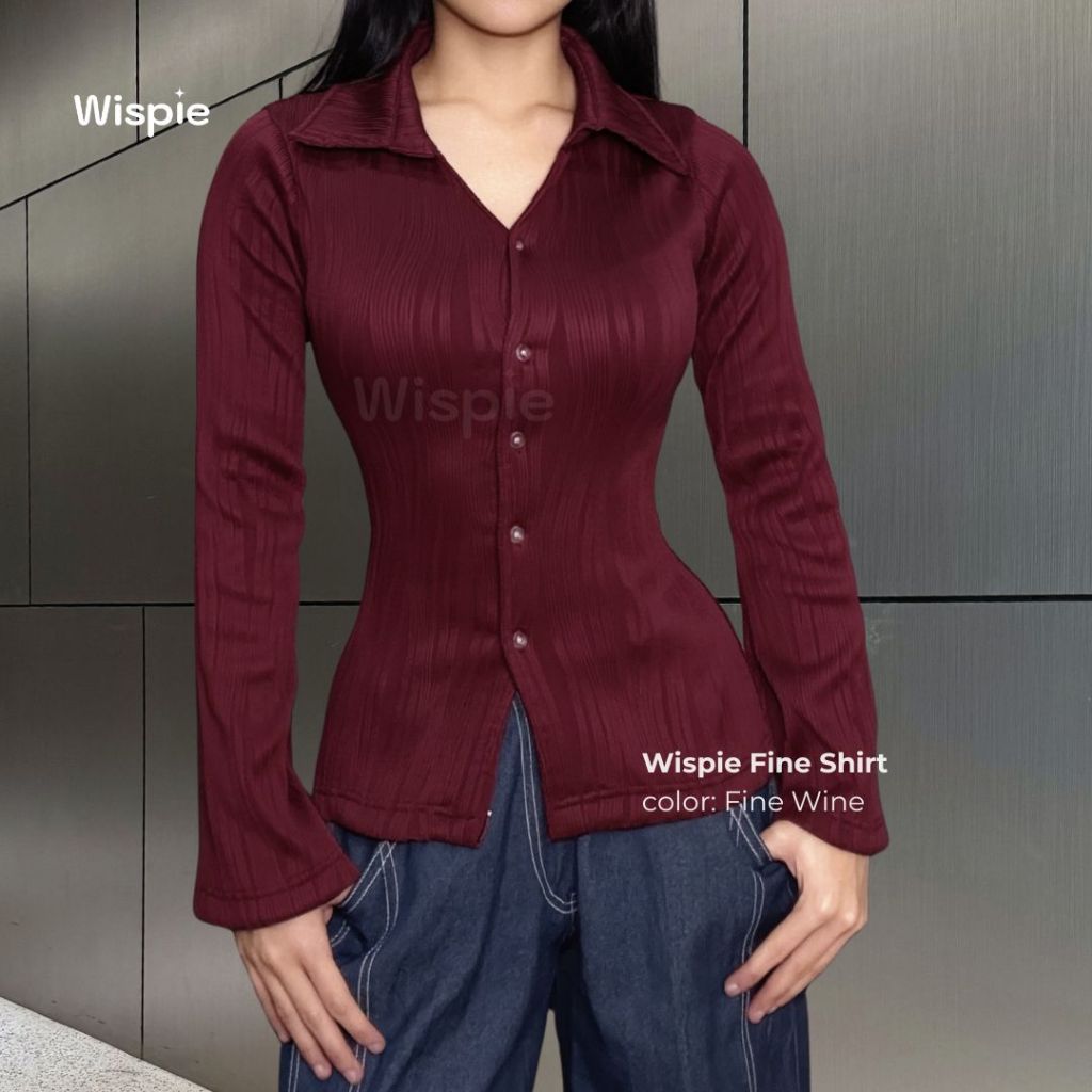 Wispie Fine Shirt | Kemeja Knit Wanita Rajut Fitted Blouse Pink Hitam Maroon Coklat