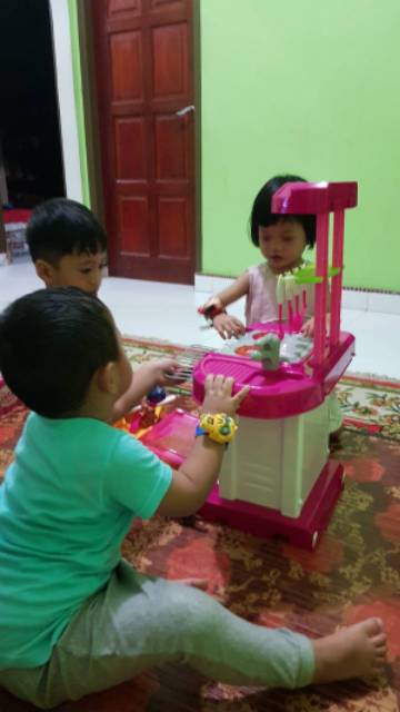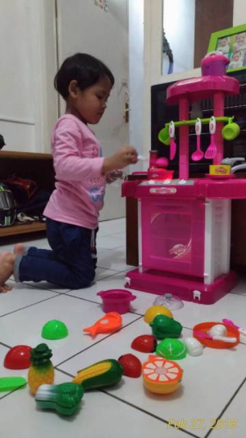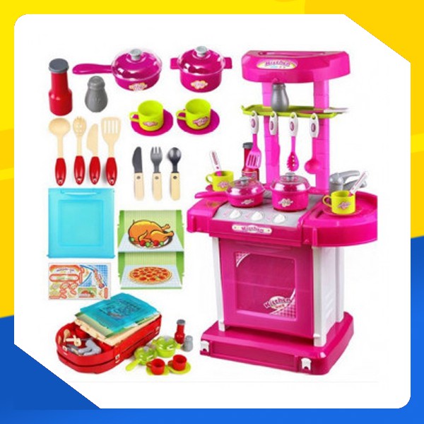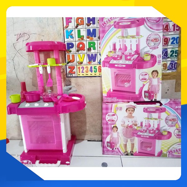 Mainan Anak Masak Masakan Anak Perempuan Besar Jumbo Lengkap Kitchen Set Mainan Anak.Koper Set Pink