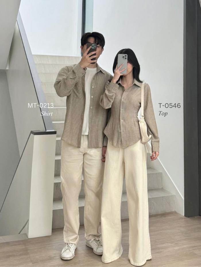 KADAKA COUPLE OUTFIT | LONG SLEEVE FITTED SHIRT & MEN T0P SHIRT | CURATED CURRICULUM COLLECTION - T0P KHAKI S - RS