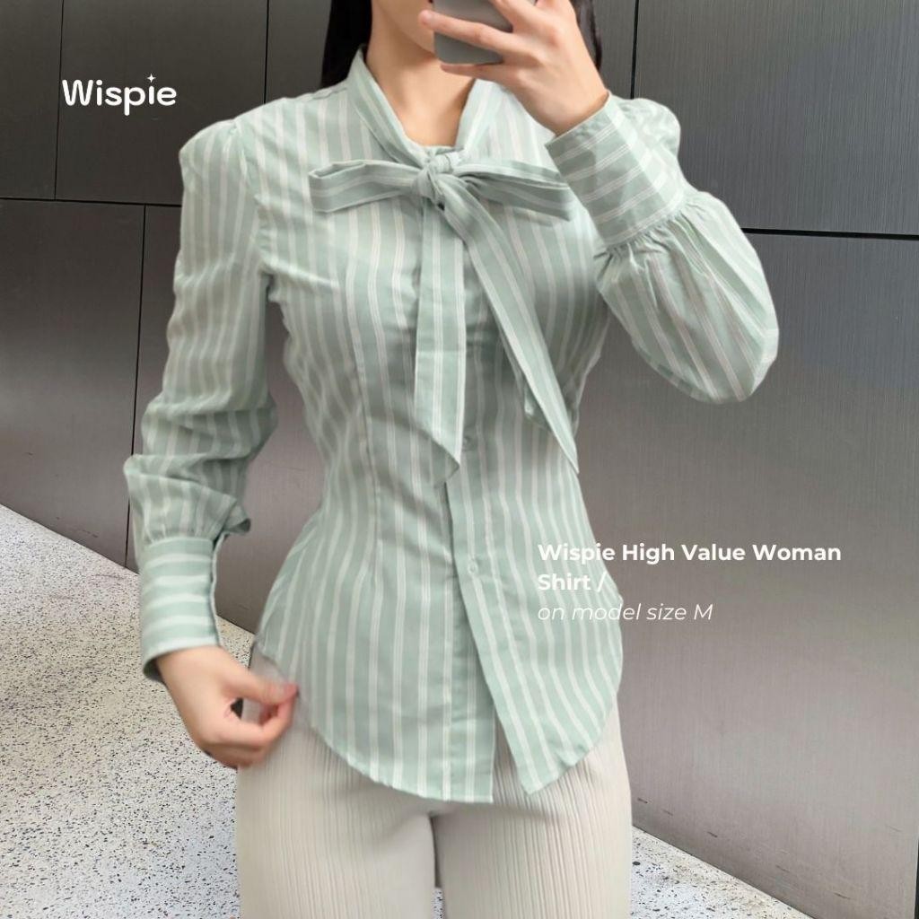 Wispie High Value Women Shirt | Kemeja Blus Wanita Fitted Shirt Lengan Panjang Katun Salur