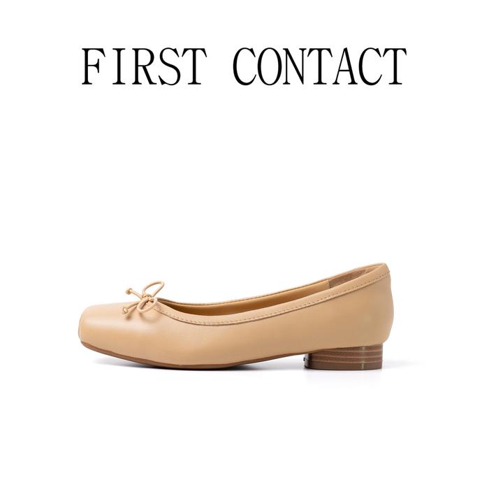 First Contact Sepatu Kasual Wanita Flatshoes Ballerina Solea Khaki Kulit Asli Premium