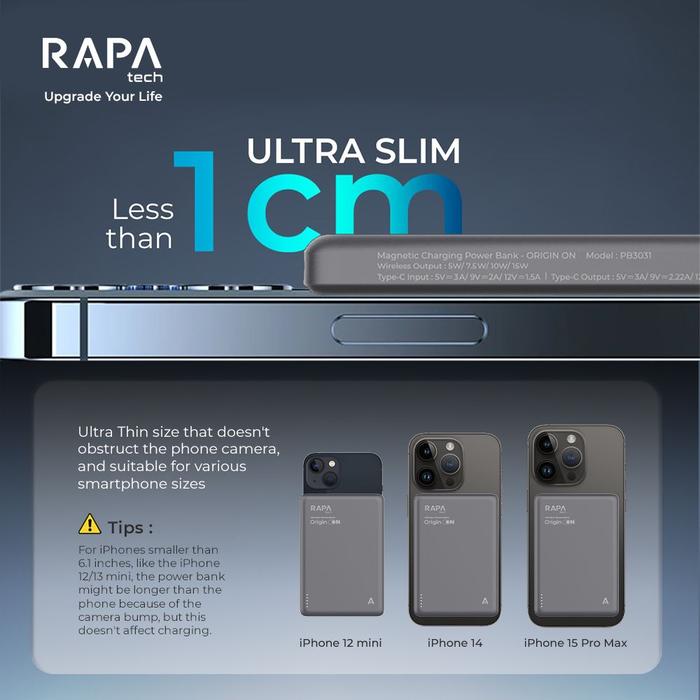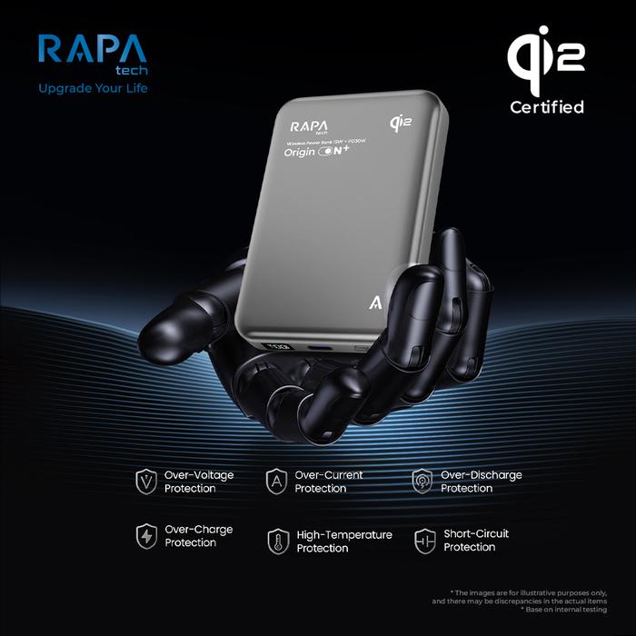 [Ccc Certified] Rapatech Powerbank Origin On Grey Edition / Origin On+/ Qi2 Led Display 10000 Mah Mah Wireless Fast Char