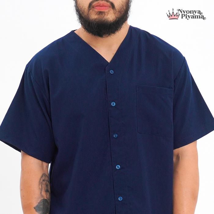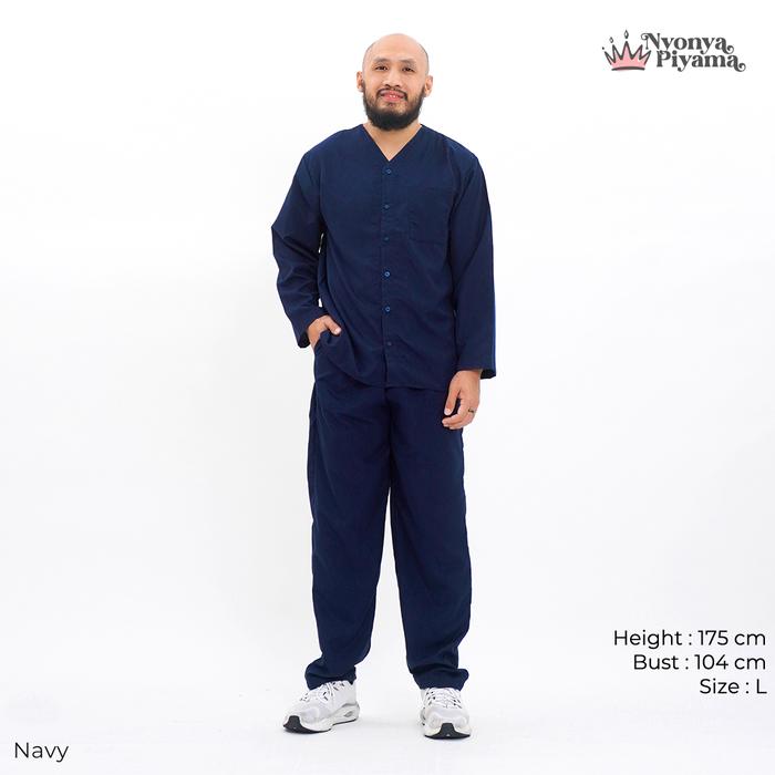 [BEST SELLER] NYONYA PIYAMA POLY BAMBOO COUPLE (NAVY COZY) BAJU BASIC POLOS CELANA KATUN PANJANG MOTIF PENDEK COUPLE WANITA SIMPLE ATASAN DEWASA TIDUR SETELAN PASANGAN - MEN POLOS, PP, M