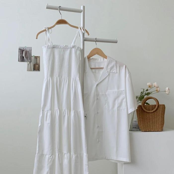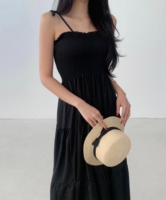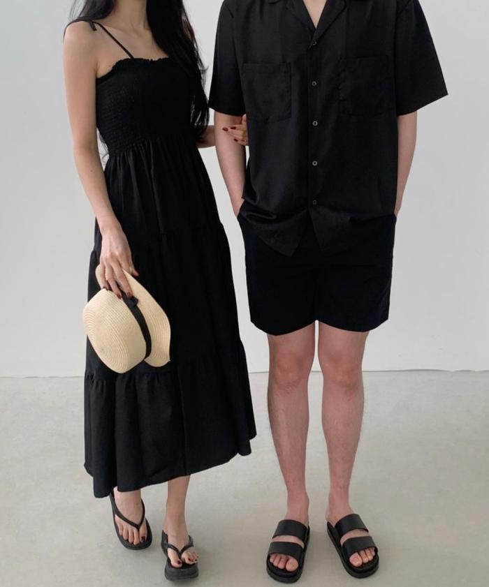 KARINA LONG DRESS COUPLE DRESS PANTAI BAJU COUPLE TERBARU DRESS SERUT SEMOK KARET DRESS+ KEMEJA - BLACK, S-XL