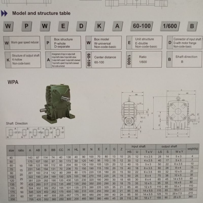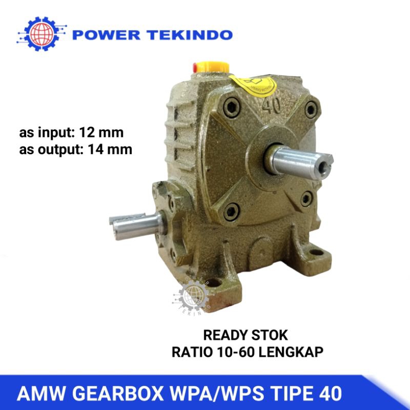 AMW Gearbox WPA 40 Ratio 10-60 Lengkap Speed Reducer Girbox Worm Gear WPA40 Girbok Dinamo Mesin Dll
