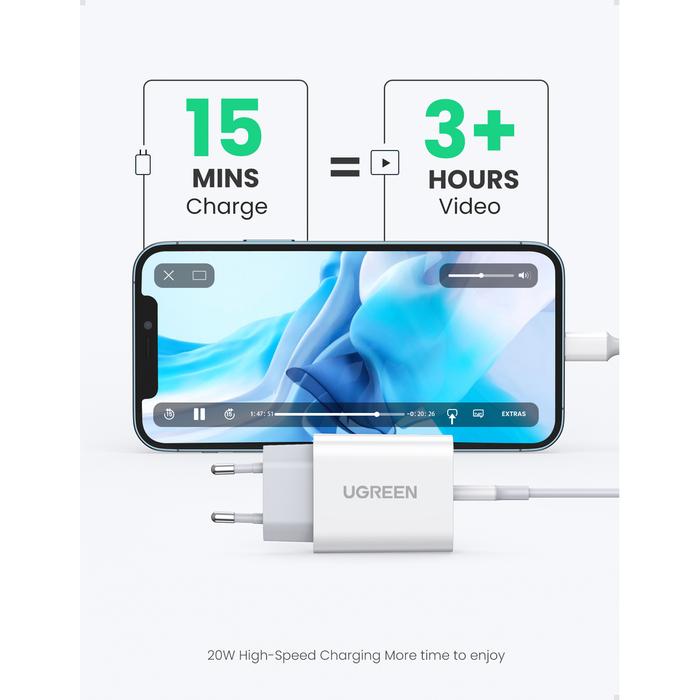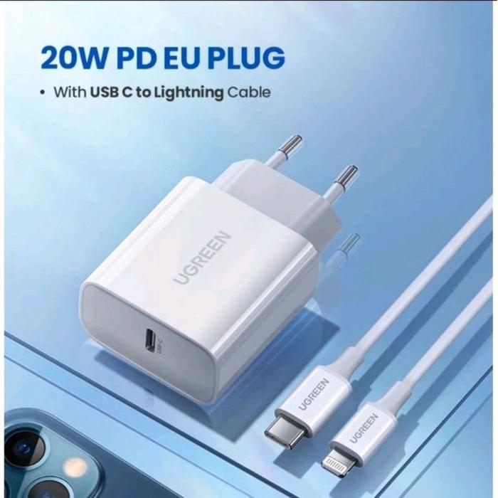 Ugreen Charger For Iphone Lightning Mfi Pd Type C Fast Charging 20W - 1Set Gan 20W 1M