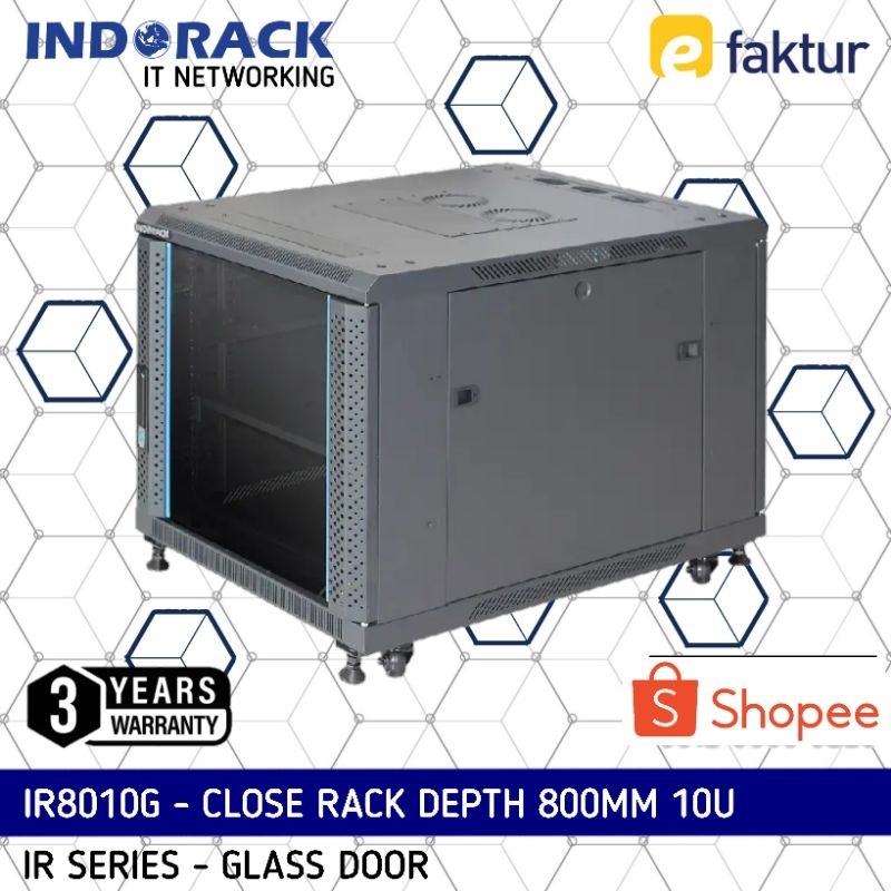 IR8010G - Close Rack INDORACK 10U Depth 800mm Glass Door Rak Server