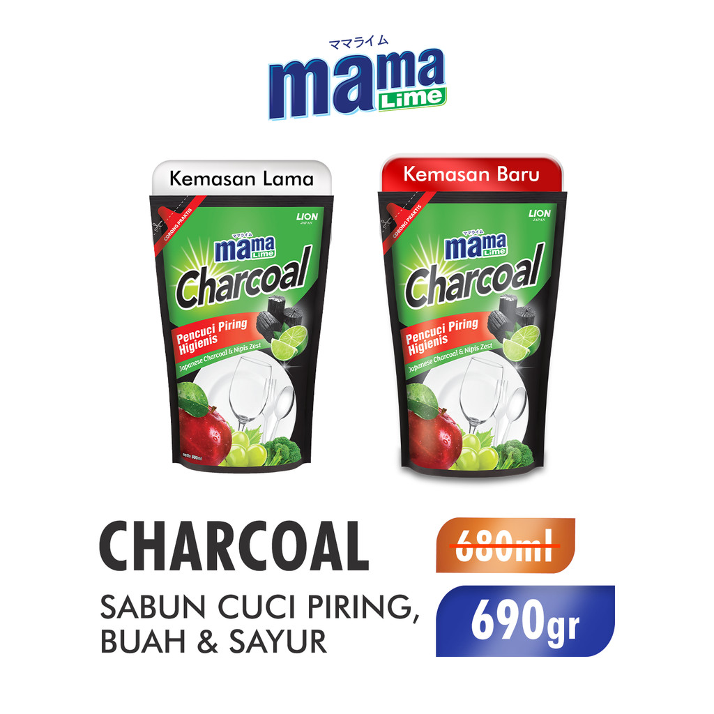 Mama Lime Sabun Cuci Piring Charcoal Pouch 680 ml/690 gr ml x2