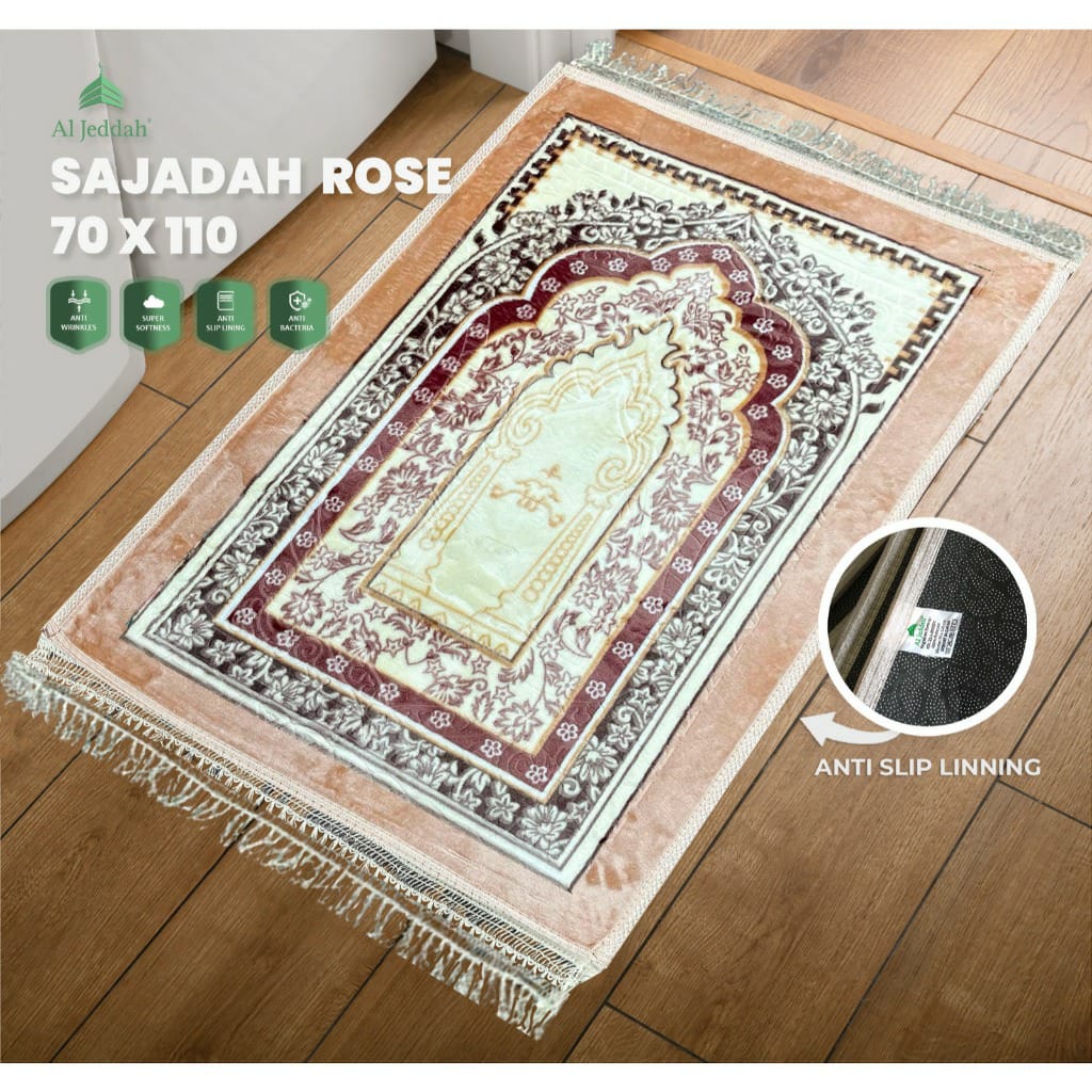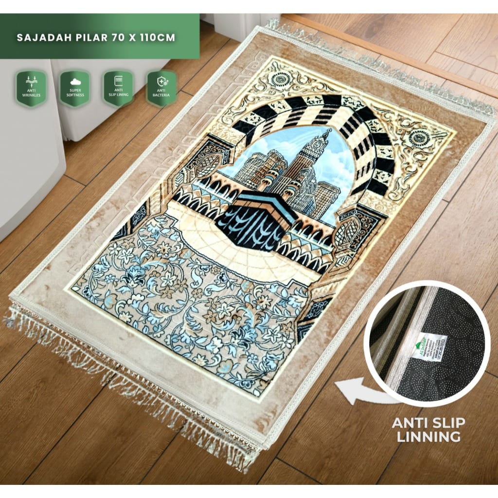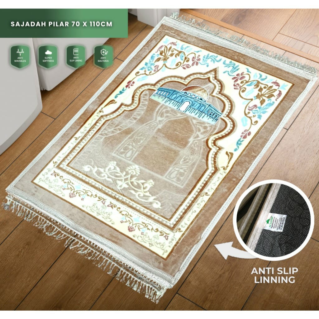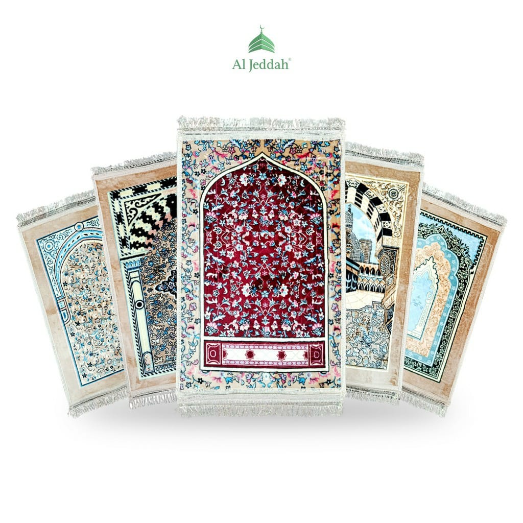 AL JEDDAH Sajadah Emboss Pilar Rumbai 70x110 Sejadah Busa Turki Tebal Premium Sajadah Halus Motif Elegan