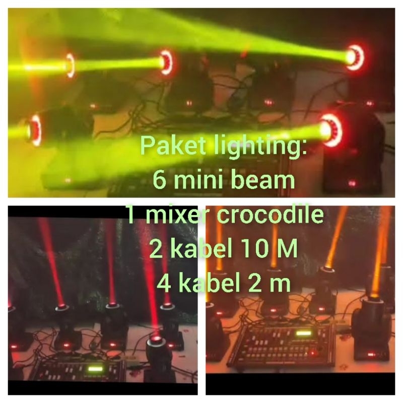 Paket Lighting 6 Mini beam dan mixer croile plus kabel XLR