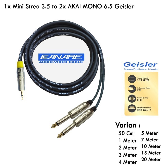 40 Meter Kabel Audio HP Jack Mini AUX Stereo SLV 3.5 To 2x Akai Mono 6.5 Geisler -JAPAN STANDARD