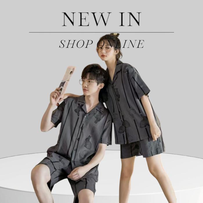 BAJU TIDUR PIYAMA COUPLE BAHAN KAOS KATUN ADEM HALUS,LENGAN PENDEK CELANA PENDEK - 13.2304, M