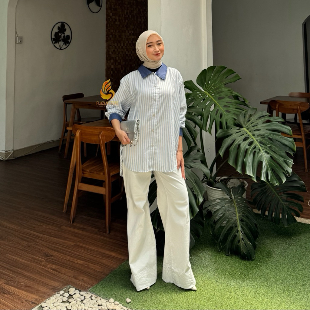 mall inline badgeZani - Eira Shirt - Kemeja Salur Wanita Lengan Panjang - Atasan Wanita Katun Basic
