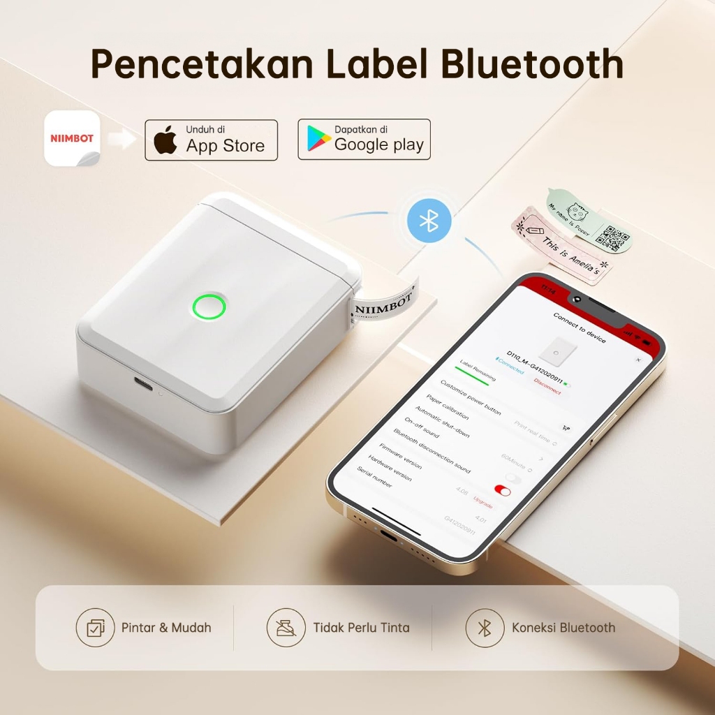 NIIMBOT D110 Perekat Label Termal Portabel Nirkabel Bluetooth Printer Stiker