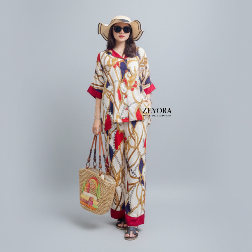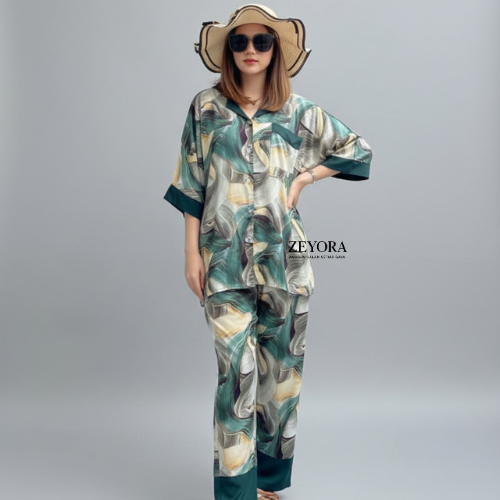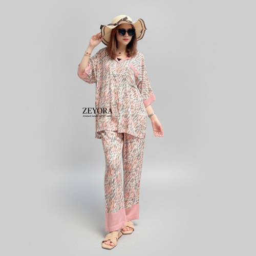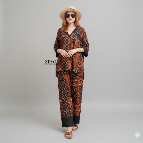 Kimi One Set Piyama Wanita Busui Katun Rayon Motif Mix Setelan Kemeja Kulot Kekinian