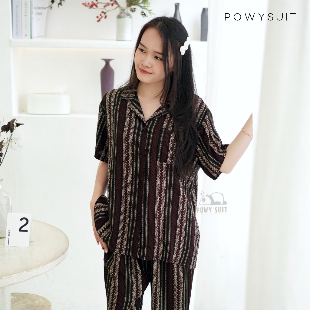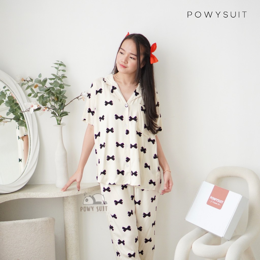 Powysuit Piyama Rayon Wanita Motif Lengan Pendek dan Setelan Celana Panjang - Baju Busui Part 3
