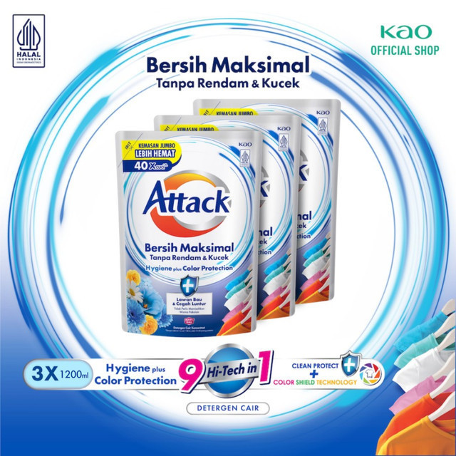 Attack Hygiene Plus Protection - Deterjen Cair Semua Jenis Mesin Cuci 1200ml x 3 pcs