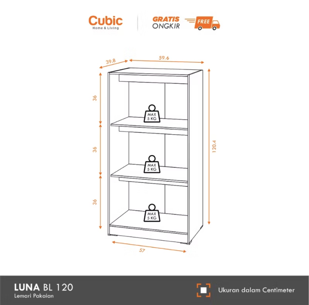 CUBIC LEMARI KECIL MINIMALIS / ALMARI PAKAIAN 2 PINTU / LUNA BL 120