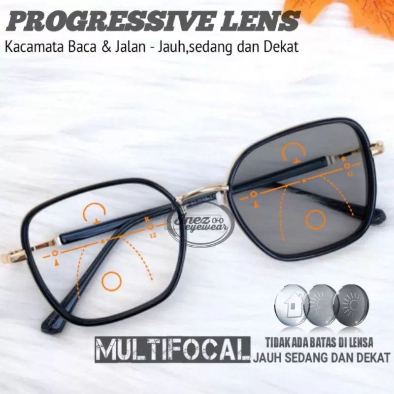 Kacamata Progressif Photocromic | Kacamata Baca dan Jalan pria/wanita | Kacamat Baca Jarak jauh,dekat dan sedang | Kacamata frame 2109