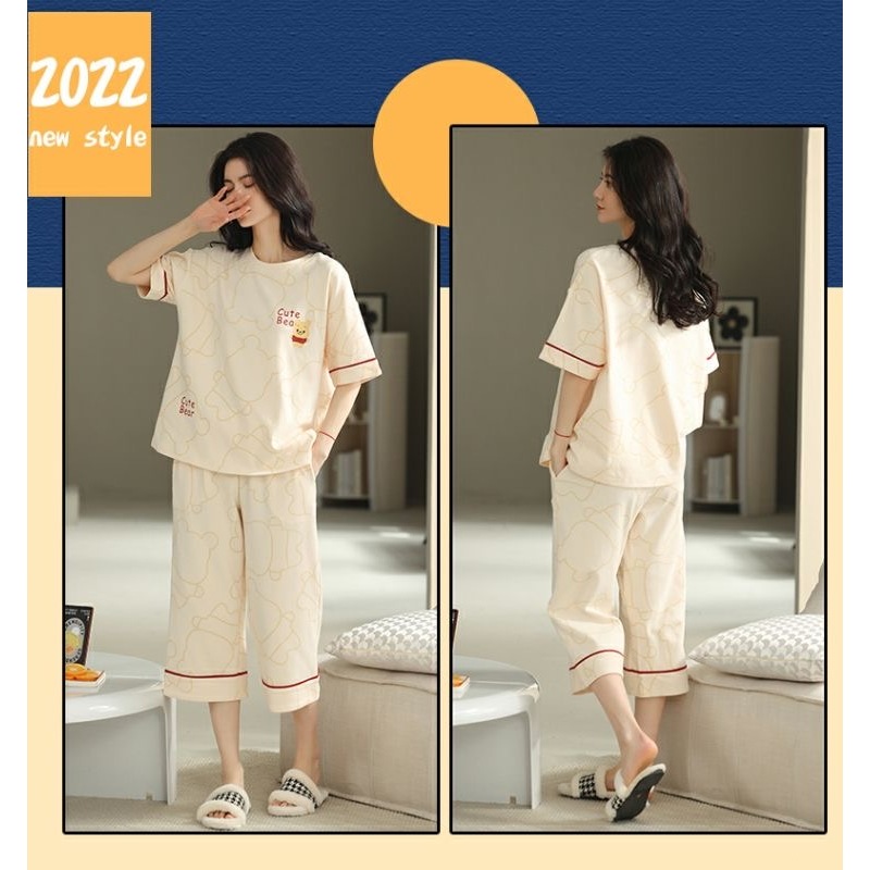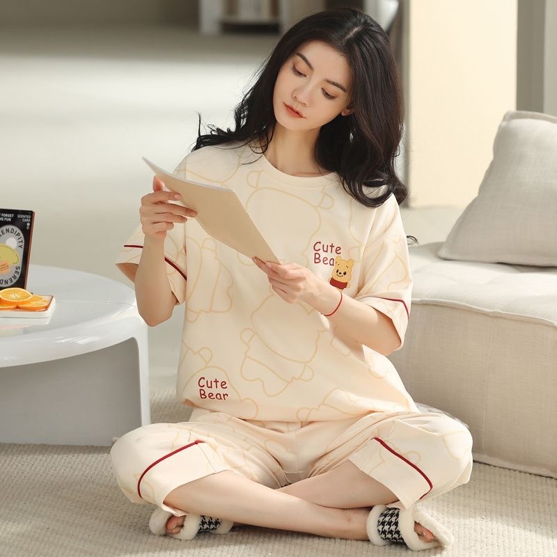 Set Piyama Berkualitas Tinggi (Lengan Pendek + Celana 3/4) - Nyaman untuk Tidur & di Rumah/daster/baju tidur wanita/baj