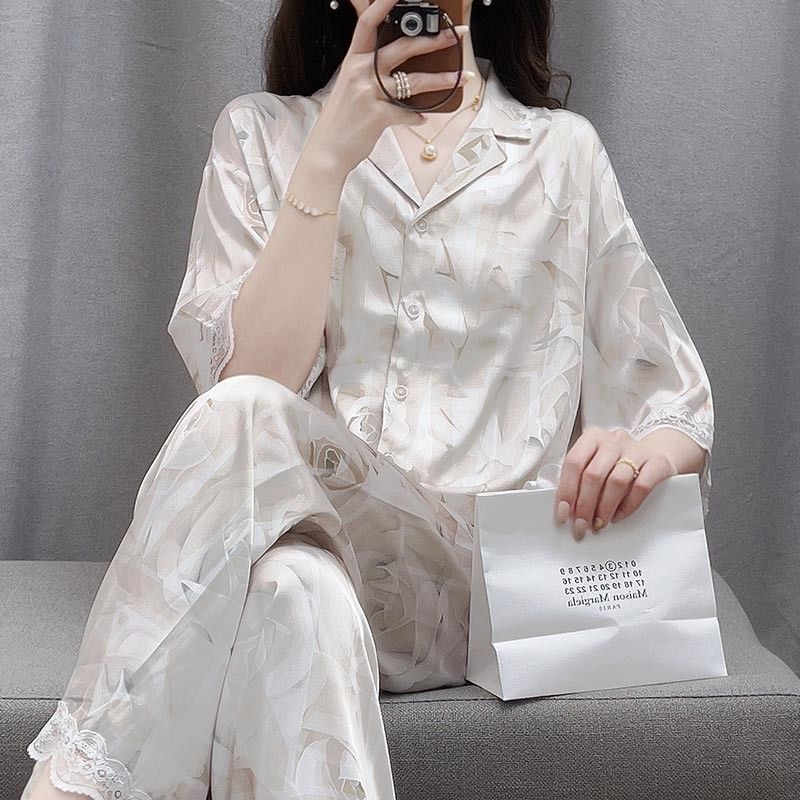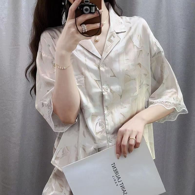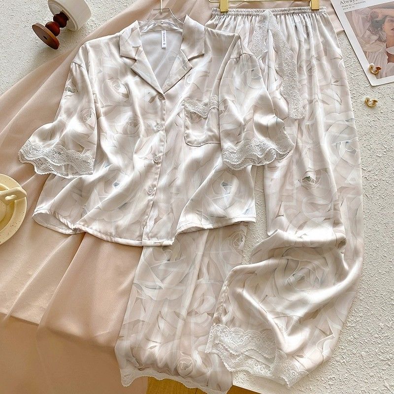 Baju Setelan Piyama Tidur Wanita Kekinian Renda Satin Motif Bunga Pakaian Rumah Wanita Korea Style Terbaru 2025