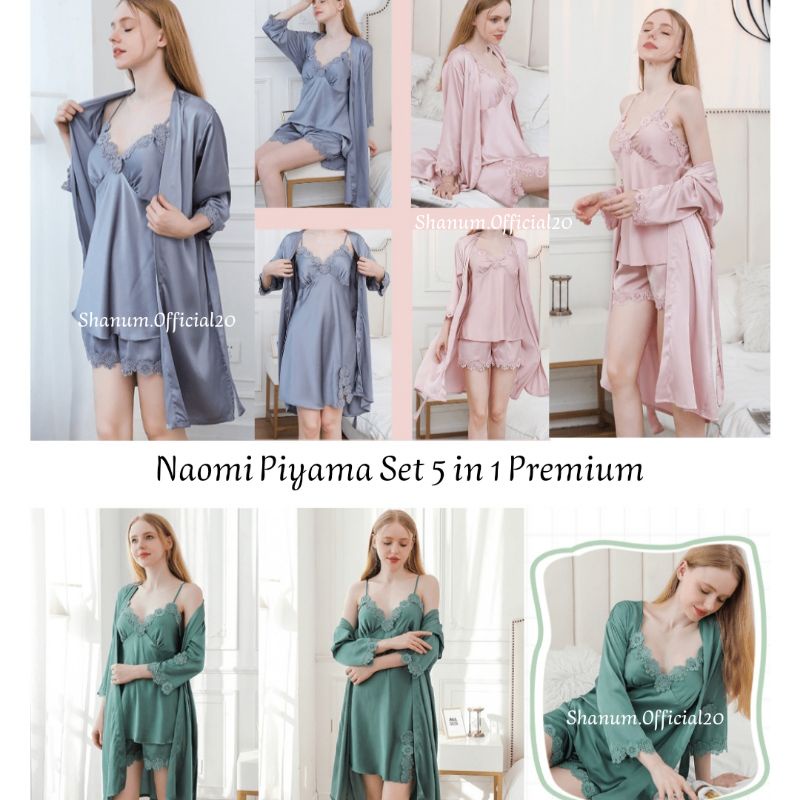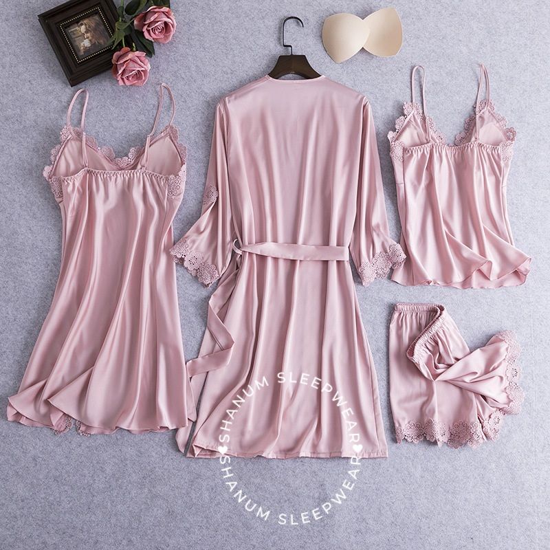 NAOMI Piyama Wanita 4in1 Set Kimono – Baju Tidur Silk Sutra Premium Import M-XXL