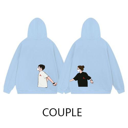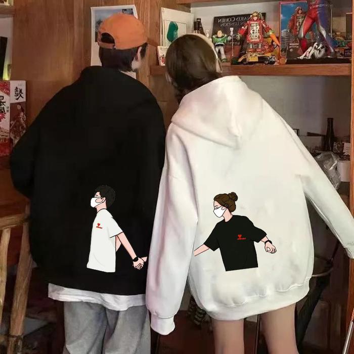 SWEATER COUPLE PASANGAN GANDENGAN / SWITER HOODIE PASANGAN PRIA WANITA SWEATER COUPLE CEWE COWO GANDENGAN - HITAM 1 PCS CEWE, M