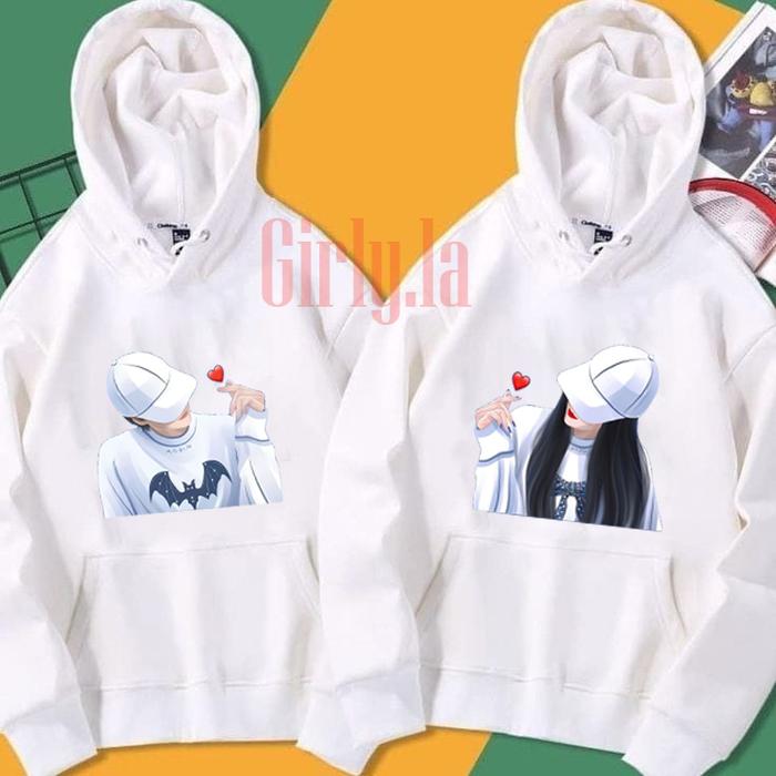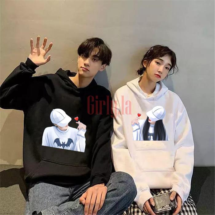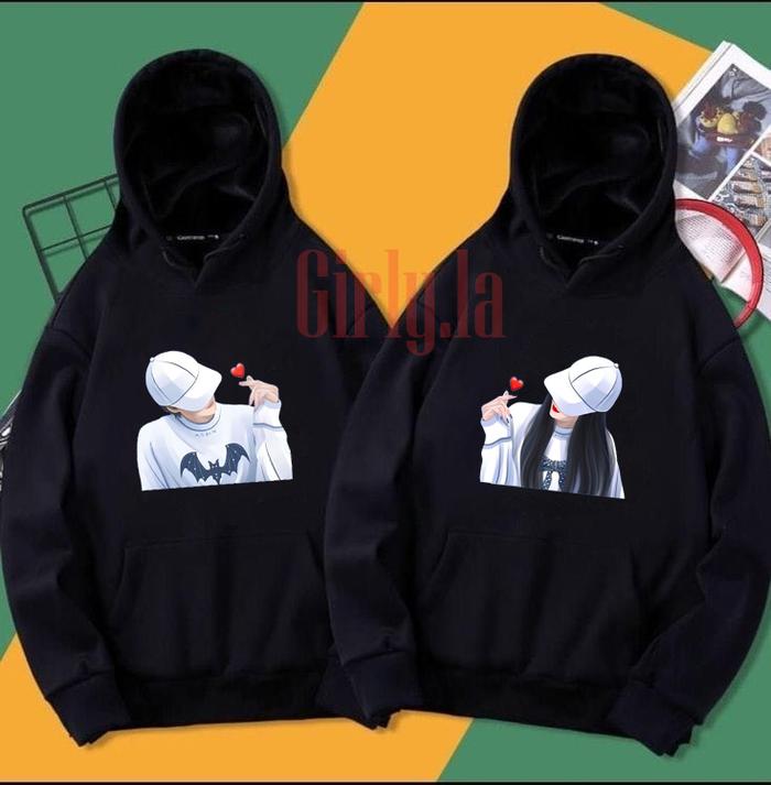 SWITER COUPLE PRIA WANITA / HOODIE COUPLE LOVE PASANGAN CEWE COWO LOVE KEKINIAN HOODIE COUPLE KOREA PRIA WANITA MURAH - HITAM+HITAM COUPLE, M