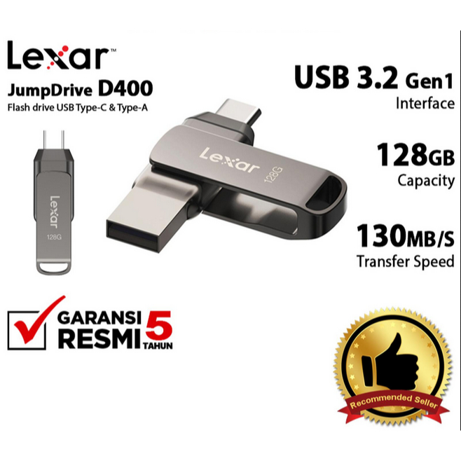 Flashdisk Lexar Jump Drive OTG D400 Type C USB 3.2 Gen 1 Flash Disk 64GB 128 GB 256GB Metal 130MB/s
