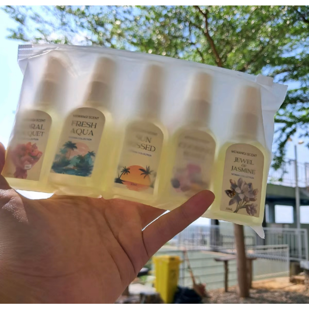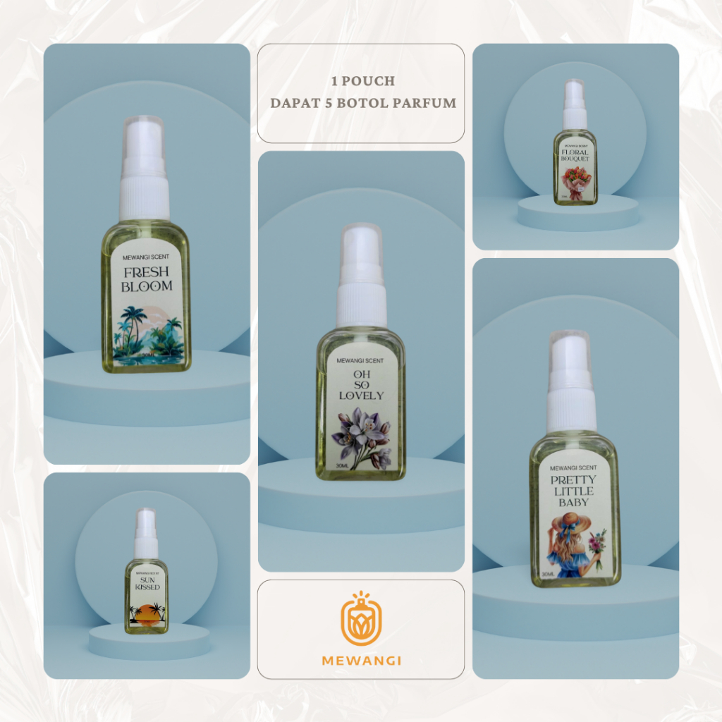 MEWANGI PERFUME – Long Lasting Paket 5 Botol Hair & Body Parfum (30ml) dengan Vitamin E & Aloevera!