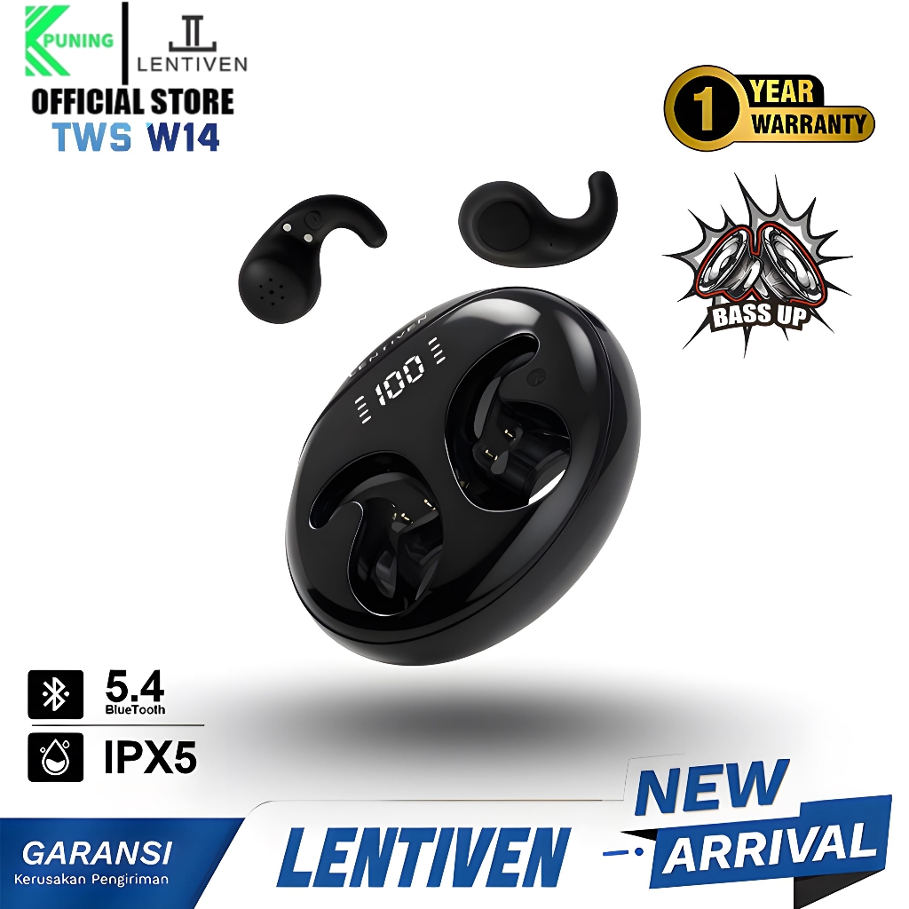 PUNING LENTIVEN HEADSET Earbuds TWS Wireless Earphone Bluetooth 5.4 Hi-Res Audio IPX5 Garansi 1 Tahun W14