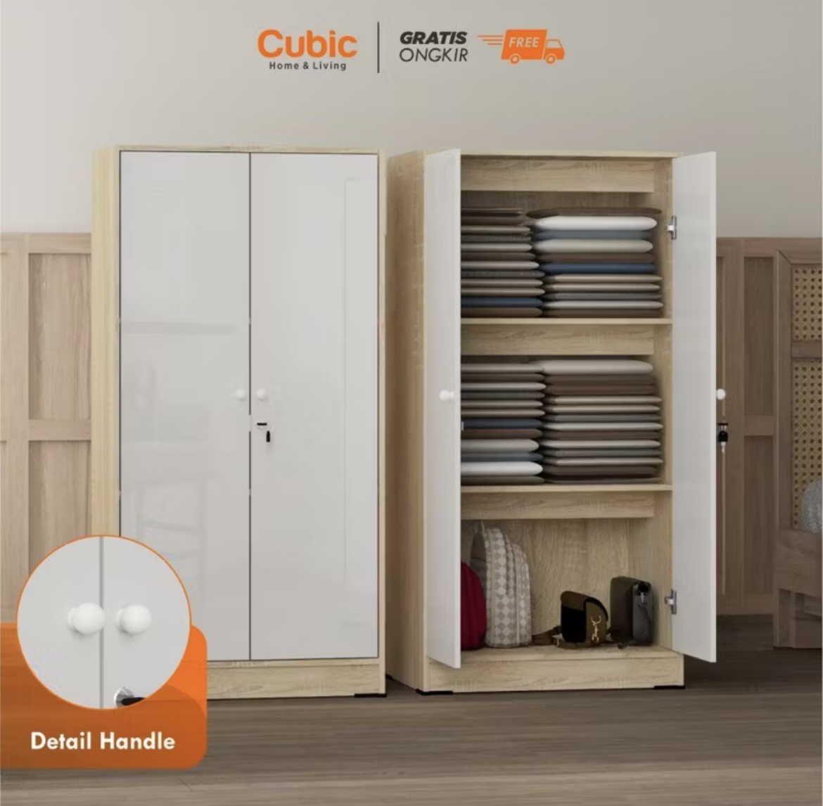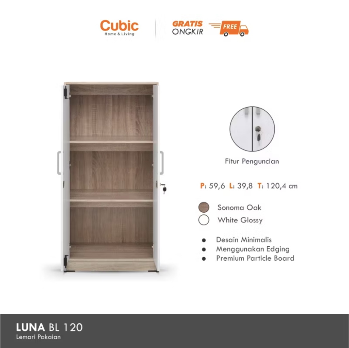 CUBIC LEMARI KECIL MINIMALIS / ALMARI PAKAIAN 2 PINTU / LUNA BL 120