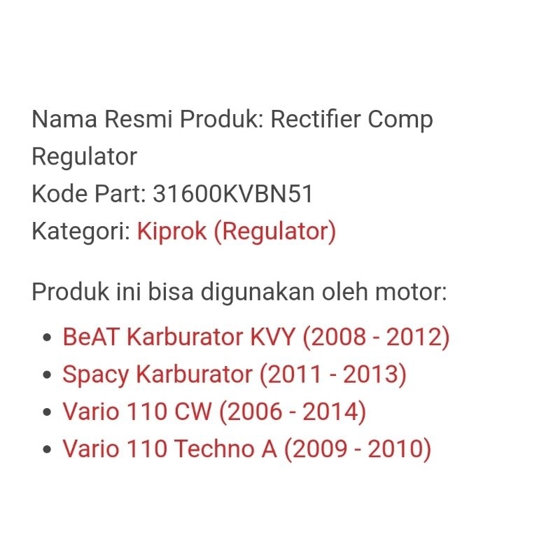 KIPROK ORI VARIO (31600-KVB-N51) BEAT CARBU-SCOOPY CARBU-SPACY CARBU