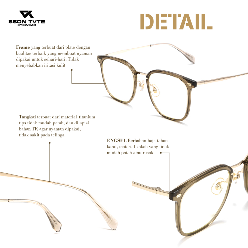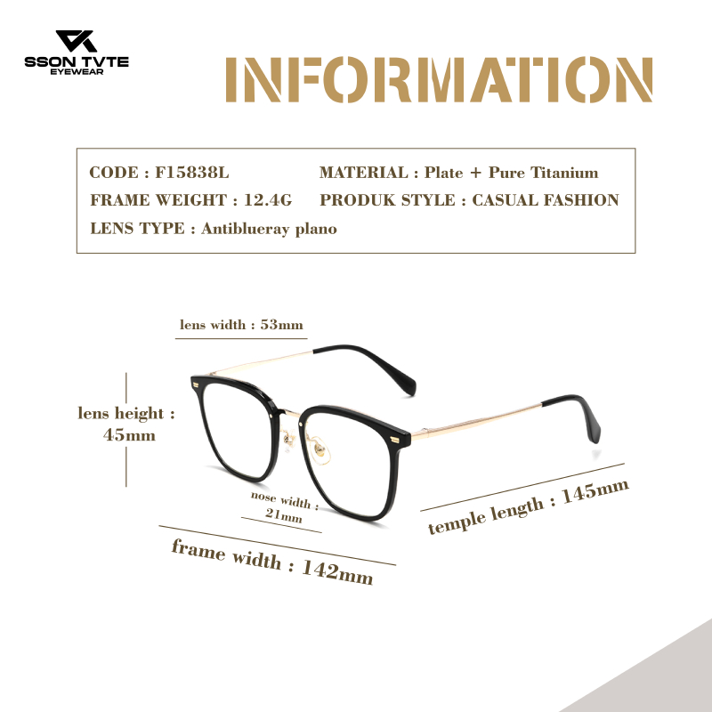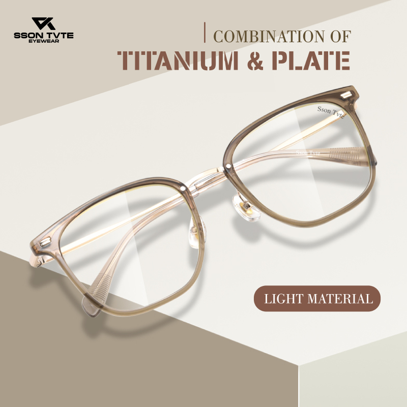 SSON TVTE Frame Kacamata Lensa Minus Pria Wanita Frame Kotak Titanium F15838L