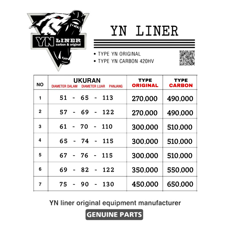 liner boring carbon 420hv boring 4T khusus kompetisi dan type original
