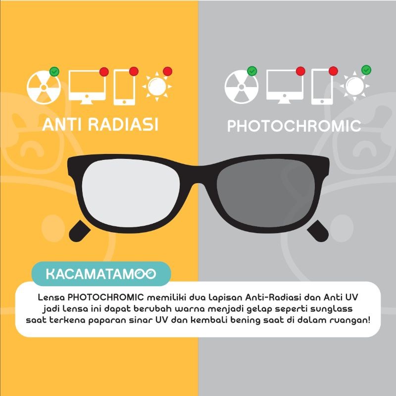 KACAMATAMOO Kacamata Photochromic – Lensa Berubah Gelap Saat Kena Sinar Matahari, Anti UV & Anti Radiasi